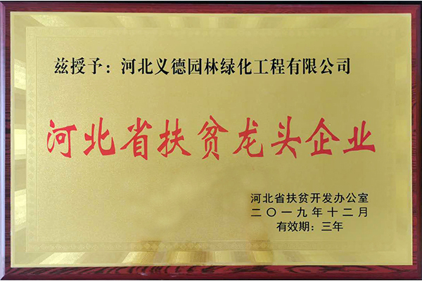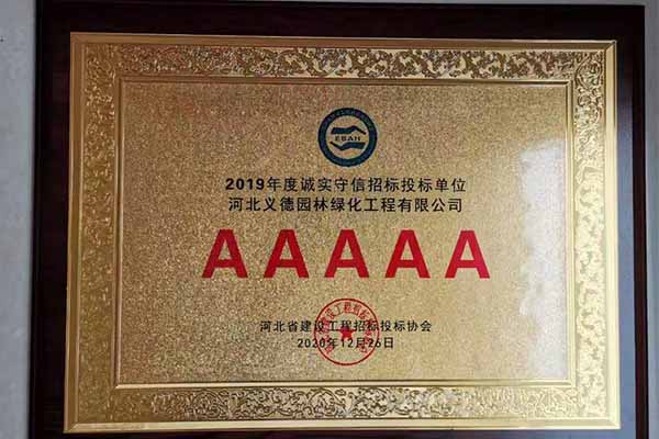 近幾年來我公司被授予2019年-2022年河北省扶貧龍頭企業、2018年國家林業標準化示范企業、2019年度全國苗圃50強、2018-2019年度河北省林業重點龍頭企業、2018年保定市精品特色現代農業園區、2018年度保定林木種苗協會授予特色苗圃、2018年度北方十佳特色苗圃、2016-2019年河北省建設工程招標投標誠實守信5A級施工企業等榮譽稱號,2017年保定市林木種苗龍頭企業、石家莊市2017年度優秀園林企業。